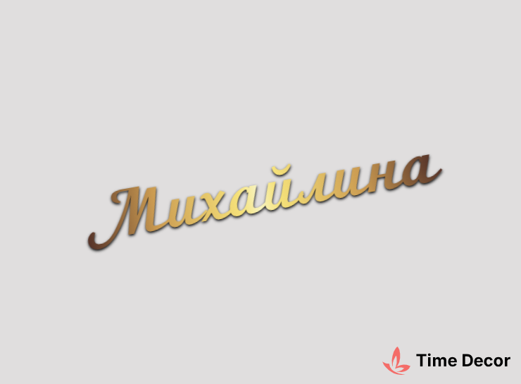 Пластиковий напис "Михайлина" – дзеркальний або матовий пластик, можливе виготовлення з клейкою зворотною поверхнею для легкого монтажу.
