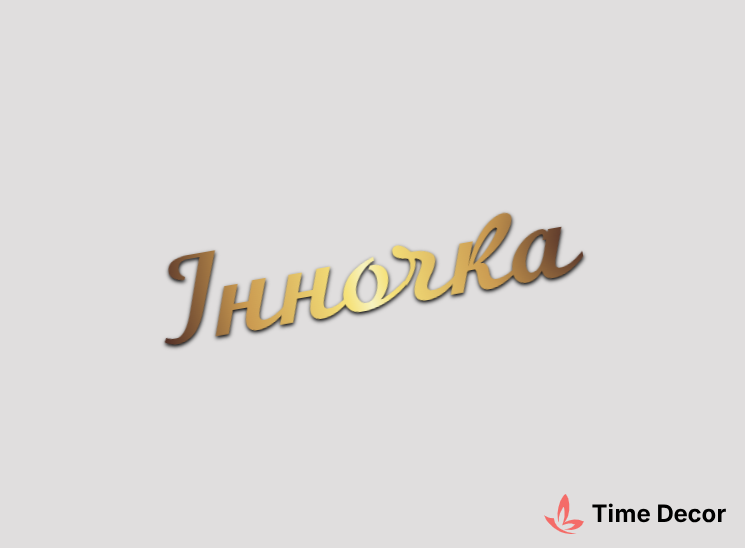 Пластиковий напис "Інночка" – дзеркальний або матовий пластик, можливе виготовлення з клейкою зворотною поверхнею для легкого монтажу.