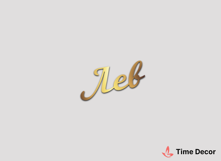 Пластиковий напис "Лев" – дзеркальний або матовий пластик, можливе виготовлення з клейкою зворотною поверхнею для легкого монтажу.