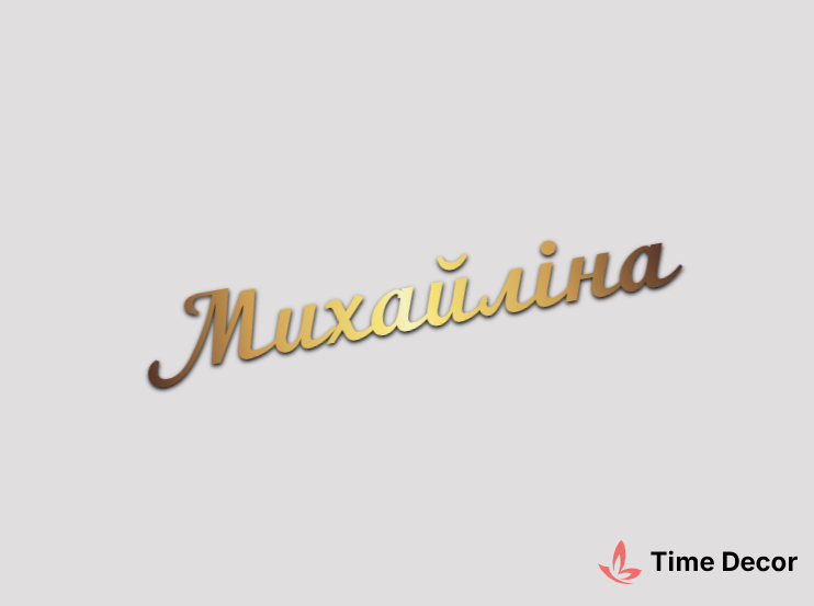 Пластиковий напис "Михайліна" – дзеркальний або матовий пластик, можливе виготовлення з клейкою зворотною поверхнею для легкого монтажу.