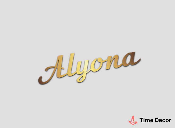 Пластиковий напис "Alyona" – дзеркальний або матовий пластик, можливе виготовлення з клейкою зворотною поверхнею для легкого монтажу.