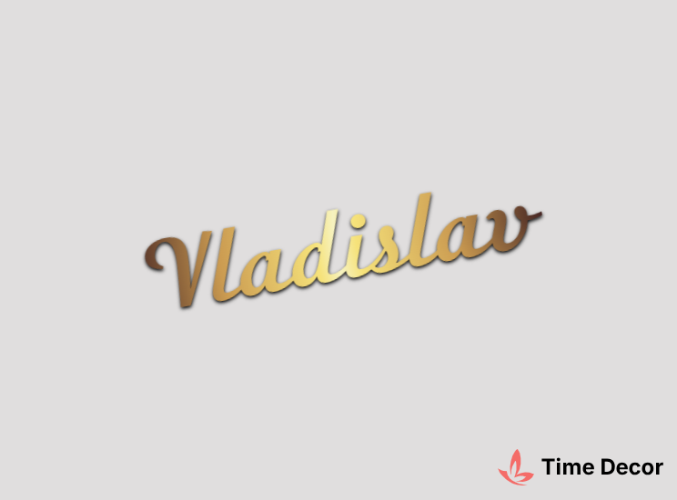 Пластиковий напис "Vladislav" – дзеркальний або матовий пластик, можливе виготовлення з клейкою зворотною поверхнею для легкого монтажу.