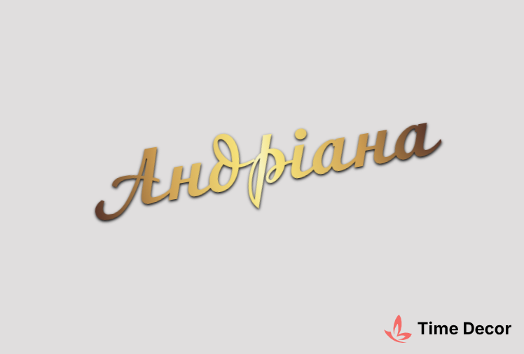 Пластиковий напис "Андріана" – дзеркальний або матовий пластик, можливе виготовлення з клейкою зворотною поверхнею для легкого монтажу.