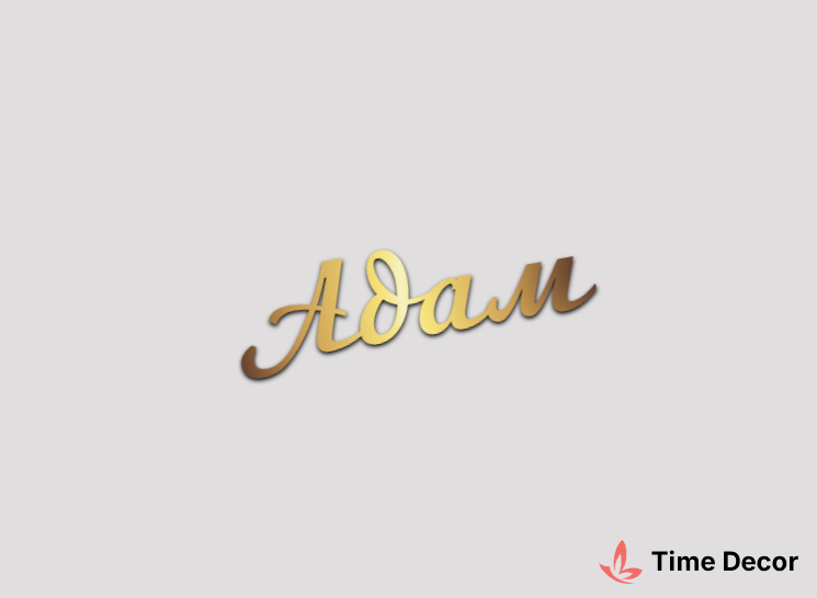 Пластиковий напис "Адам" – дзеркальний або матовий пластик, можливе виготовлення з клейкою зворотною поверхнею для легкого монтажу.