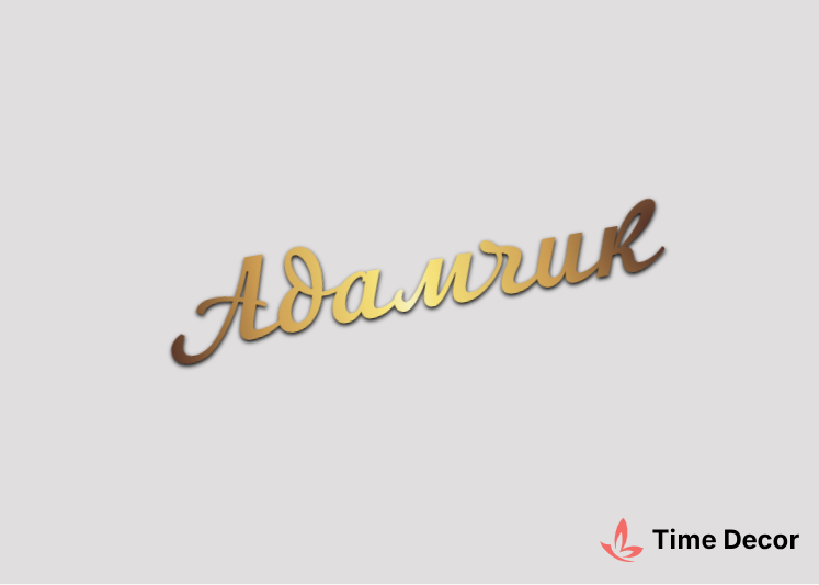 Пластиковий напис "Адамчик" – дзеркальний або матовий пластик, можливе виготовлення з клейкою зворотною поверхнею для легкого монтажу.