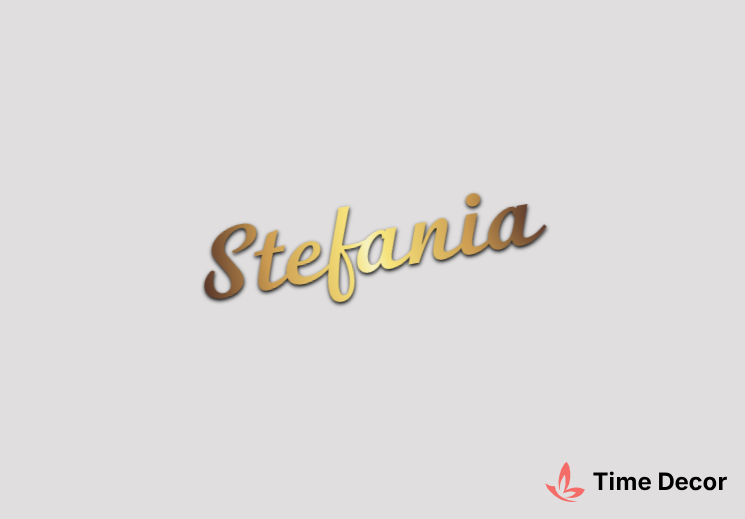 Пластиковий напис "Stefania" – дзеркальний або матовий пластик, можливе виготовлення з клейкою зворотною поверхнею для легкого монтажу.