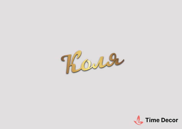 Пластиковий напис "Коля" – дзеркальний або матовий пластик, можливе виготовлення з клейкою зворотною поверхнею для легкого монтажу.