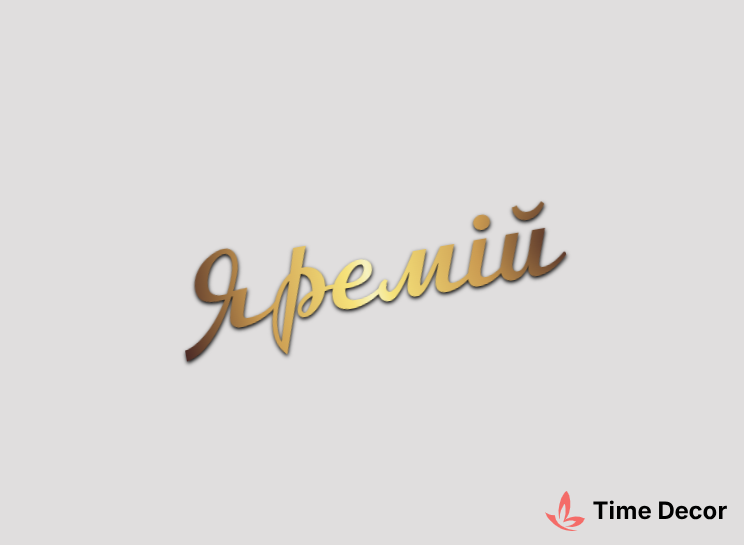 Пластиковий напис "Яремій" – дзеркальний або матовий пластик, можливе виготовлення з клейкою зворотною поверхнею для легкого монтажу.