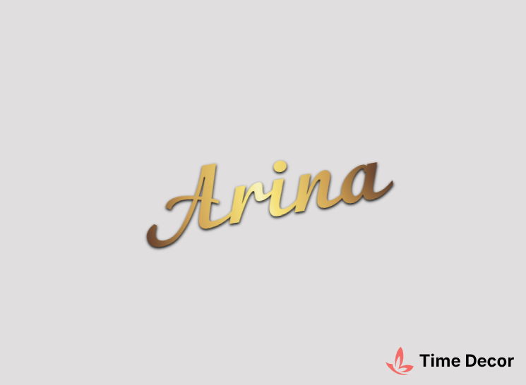 Пластиковий напис "Arina" – дзеркальний або матовий пластик, можливе виготовлення з клейкою зворотною поверхнею для легкого монтажу.