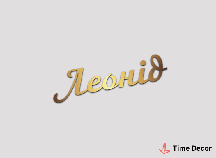 Пластиковий напис "Леонід" – дзеркальний або матовий пластик, можливе виготовлення з клейкою зворотною поверхнею для легкого монтажу.