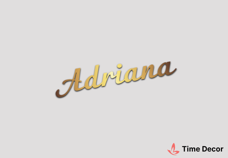 Пластиковий напис "Adriana" – дзеркальний або матовий пластик, можливе виготовлення з клейкою зворотною поверхнею для легкого монтажу.