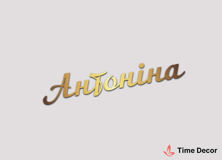 Пластиковий напис "Антоніна" – дзеркальний або матовий пластик, можливе виготовлення з клейкою зворотною поверхнею для легкого монтажу.