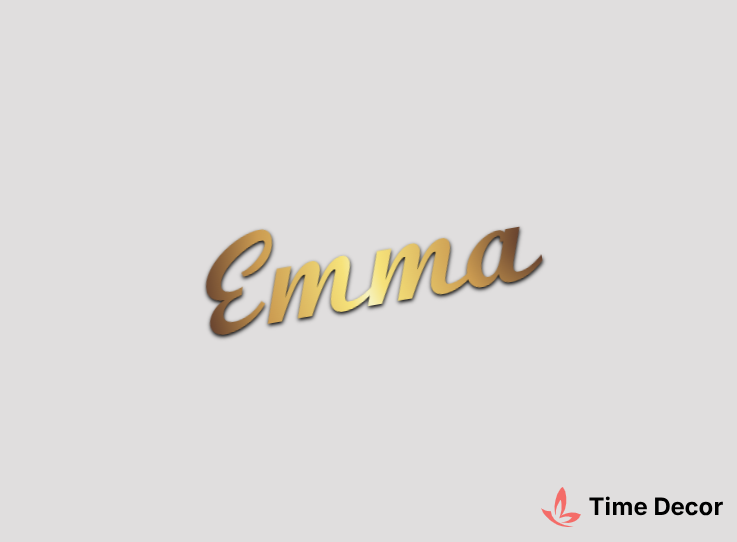 Пластиковий напис "Emma" – дзеркальний або матовий пластик, можливе виготовлення з клейкою зворотною поверхнею для легкого монтажу.