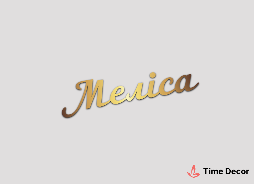 Пластиковий напис "Меліса" – дзеркальний або матовий пластик, можливе виготовлення з клейкою зворотною поверхнею для легкого монтажу.