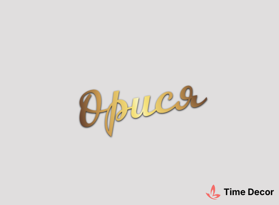 Пластиковий напис "Орися" – дзеркальний або матовий пластик, можливе виготовлення з клейкою зворотною поверхнею для легкого монтажу.