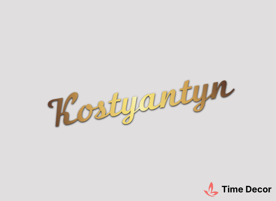Пластиковий напис "Kostyantyn" – дзеркальний або матовий пластик, можливе виготовлення з клейкою зворотною поверхнею для легкого монтажу.