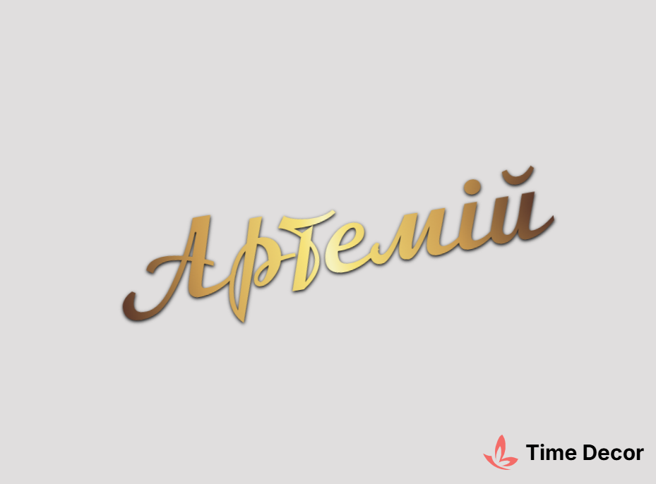 Пластиковий напис "Артемій" – дзеркальний або матовий пластик, можливе виготовлення з клейкою зворотною поверхнею для легкого монтажу.