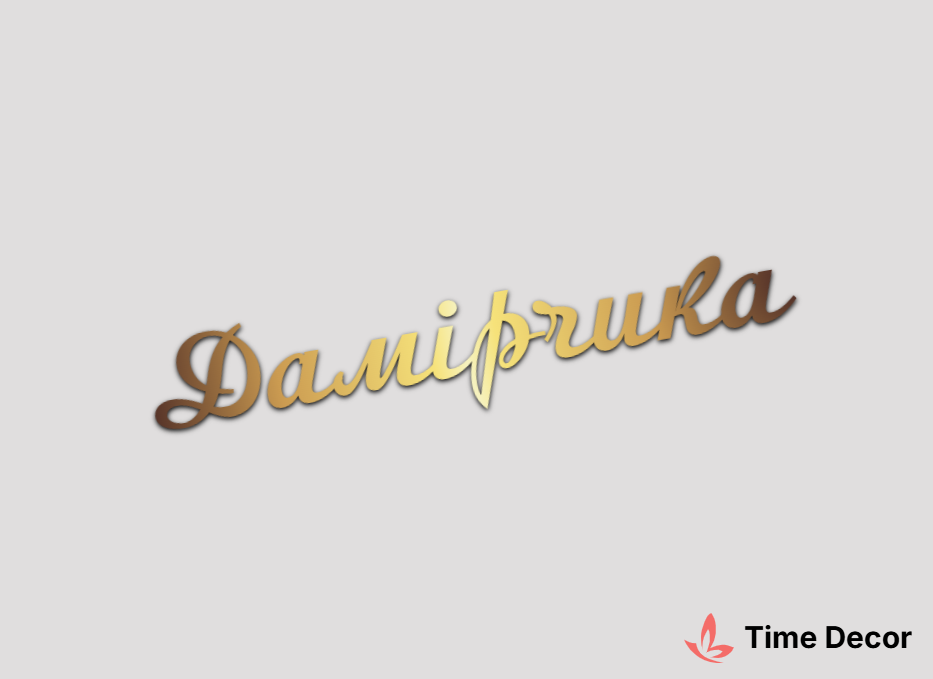 Пластиковий напис "Дамірчика" – дзеркальний або матовий пластик, можливе виготовлення з клейкою зворотною поверхнею для легкого монтажу.