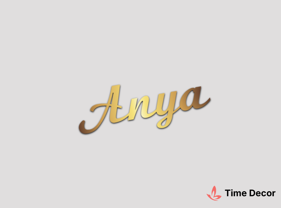Пластиковий напис "Anya" – дзеркальний або матовий пластик, можливе виготовлення з клейкою зворотною поверхнею для легкого монтажу.