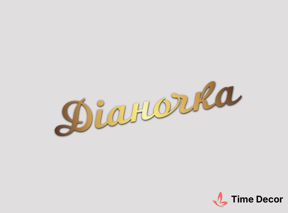 Пластиковий напис "Діаночка" – дзеркальний або матовий пластик, можливе виготовлення з клейкою зворотною поверхнею для легкого монтажу.