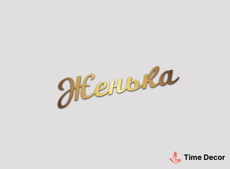 Пластиковий напис "Женька" – дзеркальний або матовий пластик, можливе виготовлення з клейкою зворотною поверхнею для легкого монтажу.