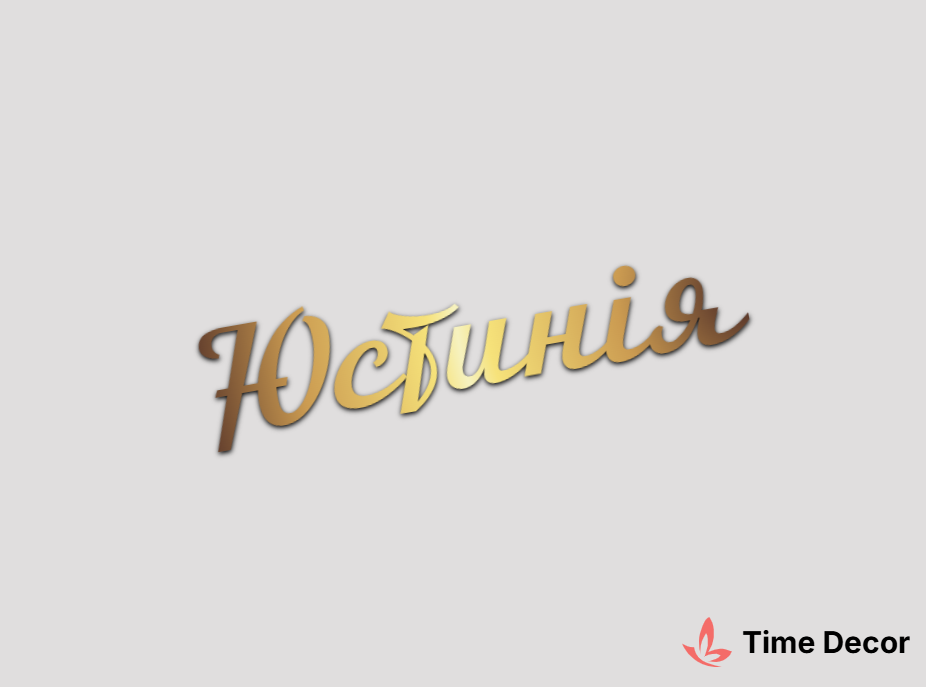 Пластиковий напис "Юстинія" – дзеркальний або матовий пластик, можливе виготовлення з клейкою зворотною поверхнею для легкого монтажу.