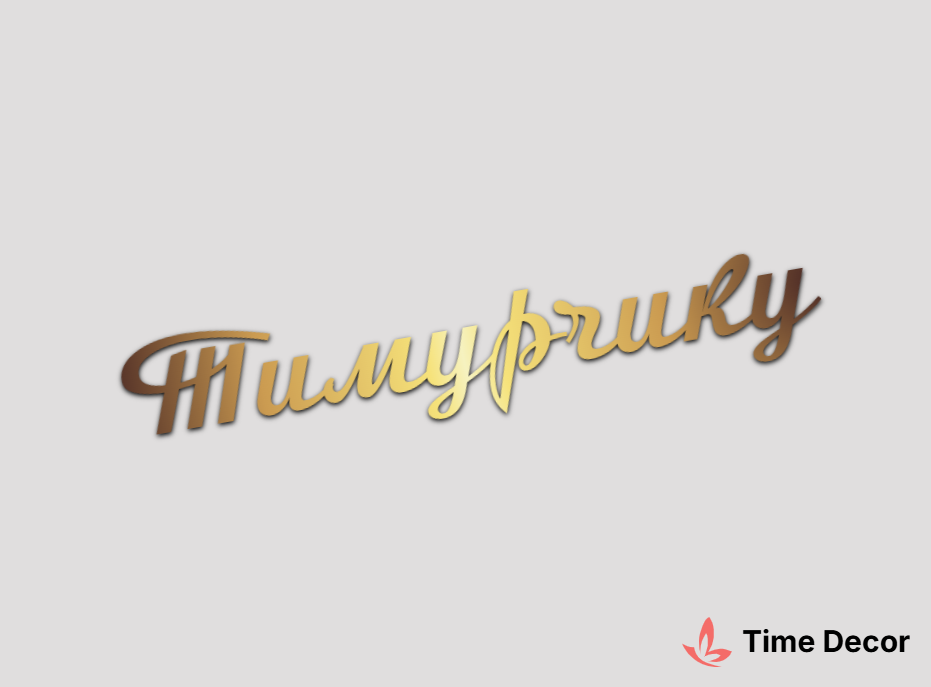 Пластиковий напис "Тимурчику" – дзеркальний або матовий пластик, можливе виготовлення з клейкою зворотною поверхнею для легкого монтажу.