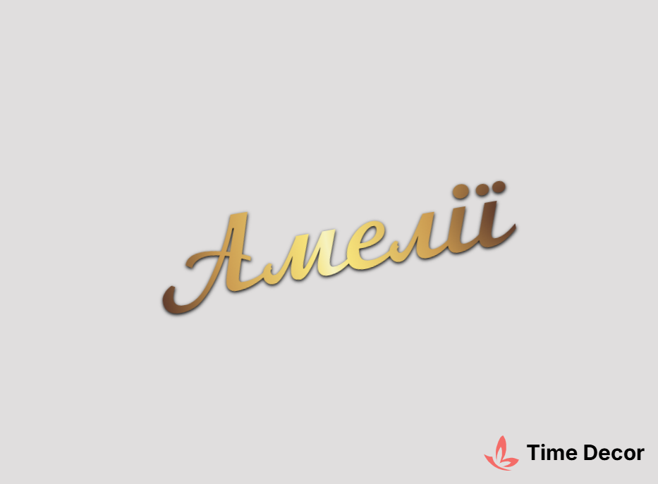 Пластиковий напис "Амелії" – дзеркальний або матовий пластик, можливе виготовлення з клейкою зворотною поверхнею для легкого монтажу.
