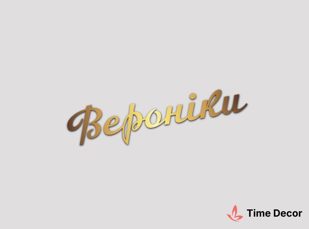 Пластиковий напис "Вероніки" – дзеркальний або матовий пластик, можливе виготовлення з клейкою зворотною поверхнею для легкого монтажу.
