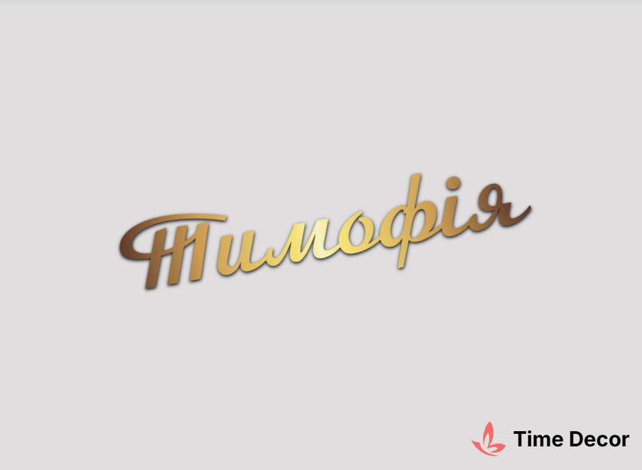Пластиковий напис "Тимофія" – дзеркальний або матовий пластик, можливе виготовлення з клейкою зворотною поверхнею для легкого монтажу.