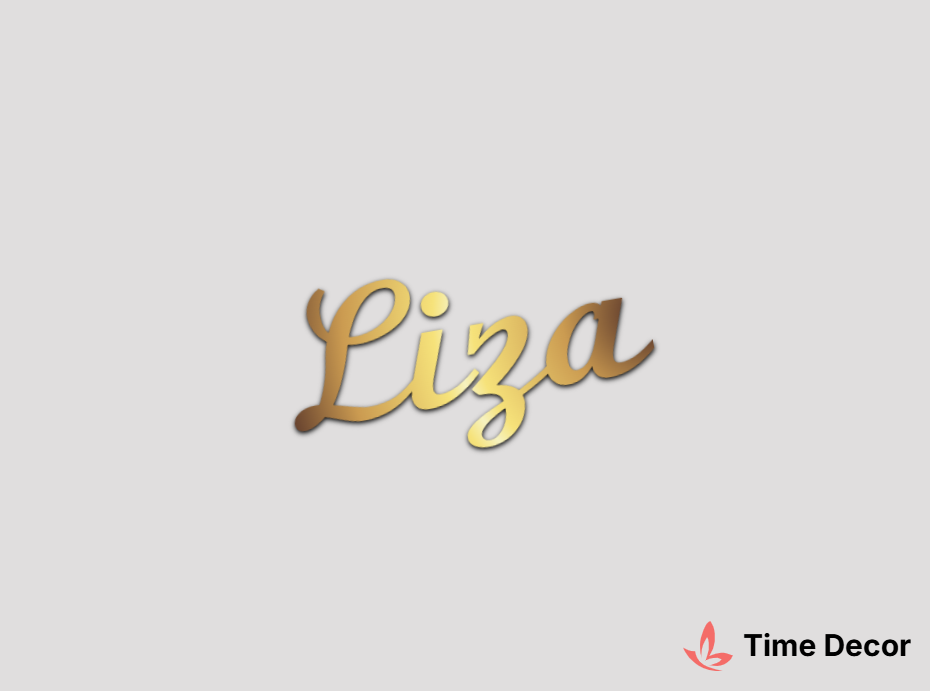 Пластиковий напис "Liza" – дзеркальний або матовий пластик, можливе виготовлення з клейкою зворотною поверхнею для легкого монтажу.