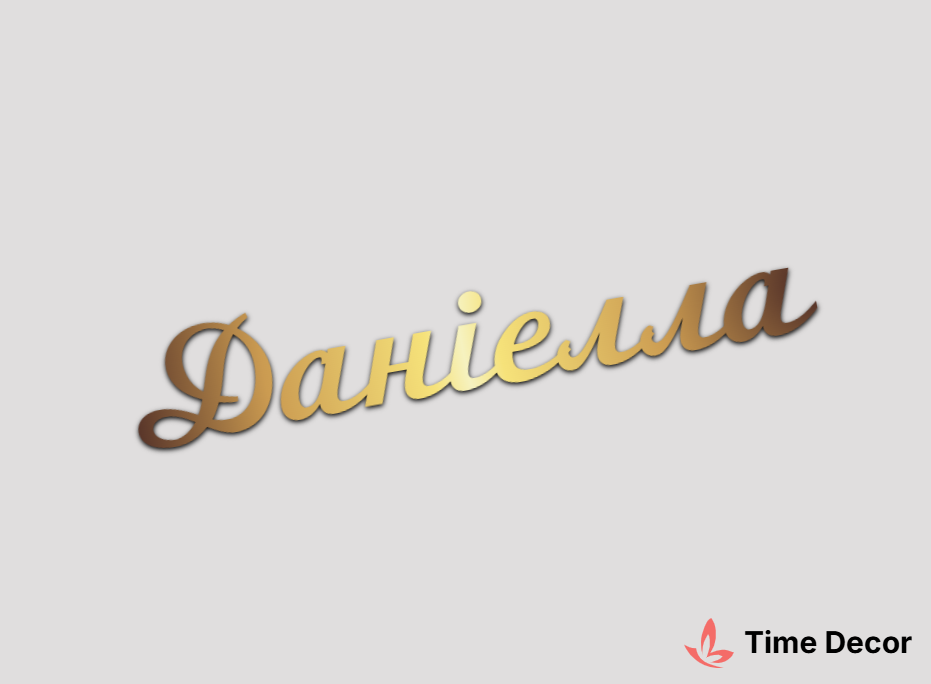 Пластиковий напис "Даніелла" – дзеркальний або матовий пластик, можливе виготовлення з клейкою зворотною поверхнею для легкого монтажу.