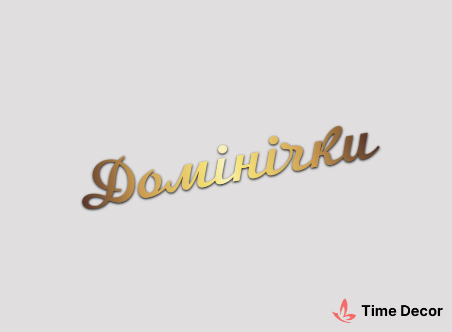 Пластиковий напис "Домінічки" – дзеркальний або матовий пластик, можливе виготовлення з клейкою зворотною поверхнею для легкого монтажу.