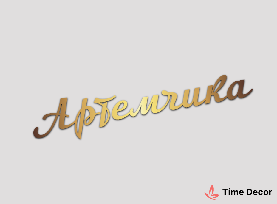 Пластиковий напис "Артемчика" – дзеркальний або матовий пластик, можливе виготовлення з клейкою зворотною поверхнею для легкого монтажу.
