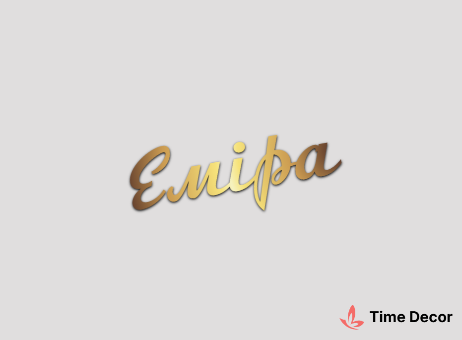 Пластиковий напис "Еміра" – дзеркальний або матовий пластик, можливе виготовлення з клейкою зворотною поверхнею для легкого монтажу.