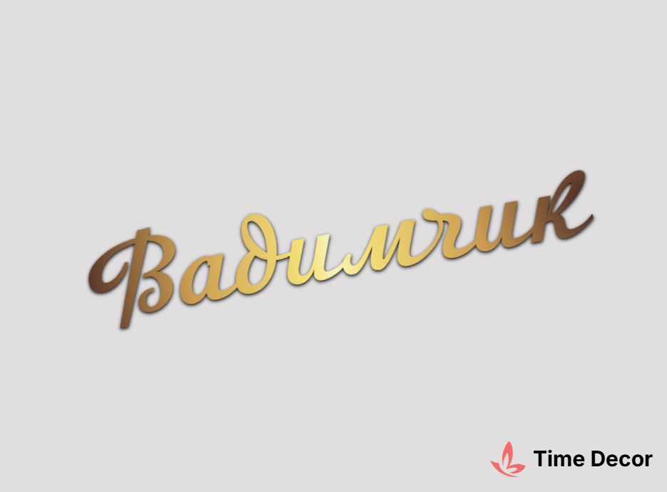 Пластиковий напис "Вадимчик" – дзеркальний або матовий пластик, можливе виготовлення з клейкою зворотною поверхнею для легкого монтажу.
