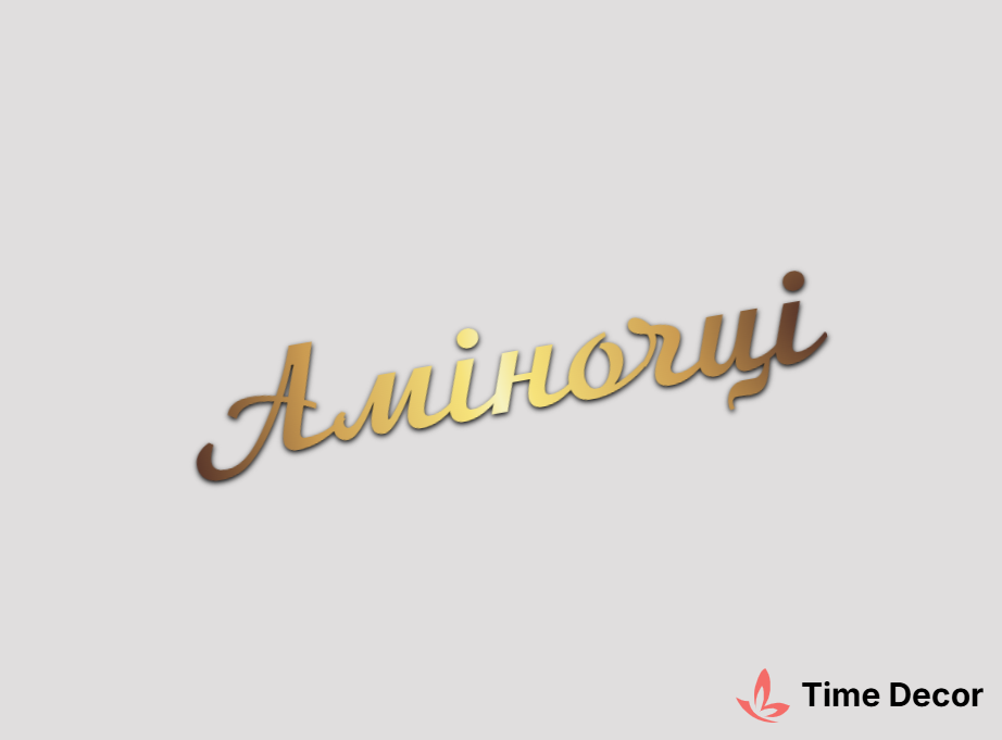 Пластиковий напис "Аміночці" – дзеркальний або матовий пластик, можливе виготовлення з клейкою зворотною поверхнею для легкого монтажу.