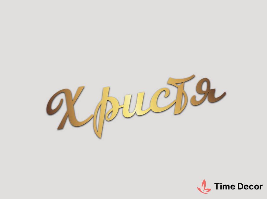 Пластиковий напис "Христя" – дзеркальний або матовий пластик, можливе виготовлення з клейкою зворотною поверхнею для легкого монтажу.