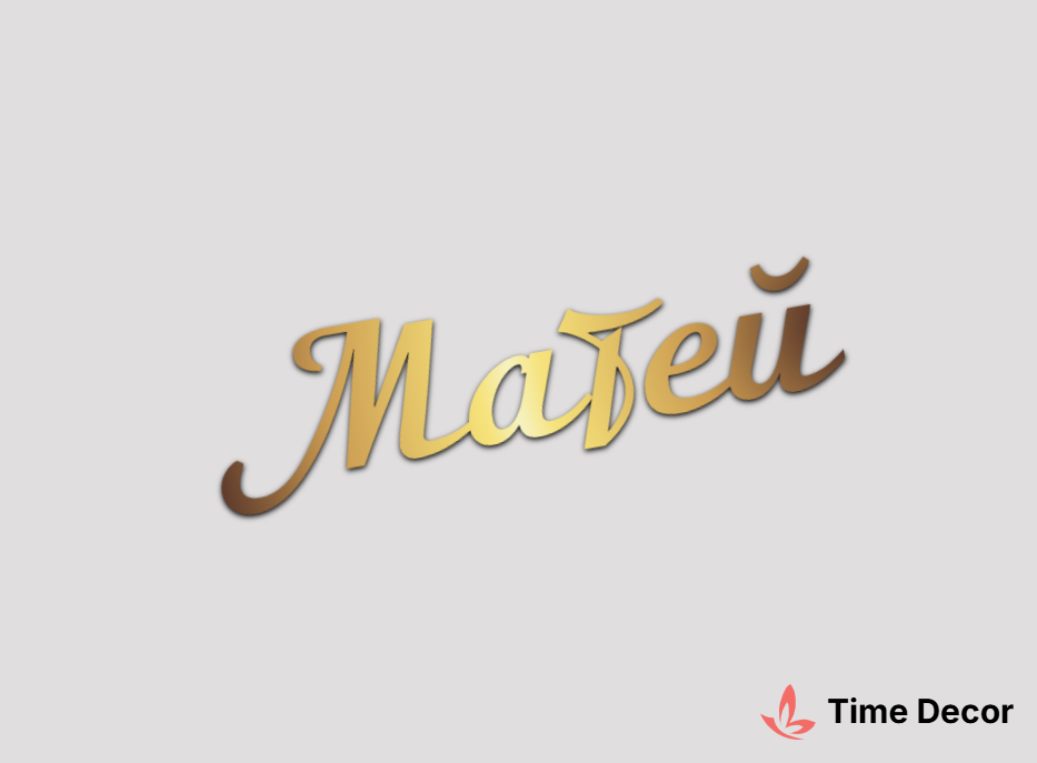 Пластиковий напис "Матей" – дзеркальний або матовий пластик, можливе виготовлення з клейкою зворотною поверхнею для легкого монтажу.