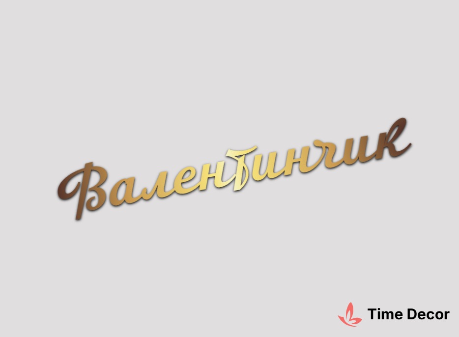 Пластиковий напис "Валентинчик" – дзеркальний або матовий пластик, можливе виготовлення з клейкою зворотною поверхнею для легкого монтажу.