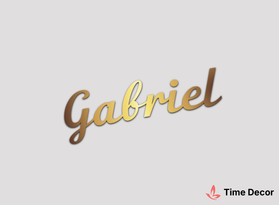 Пластиковий напис "Gabriel" – дзеркальний або матовий пластик, можливе виготовлення з клейкою зворотною поверхнею для легкого монтажу.