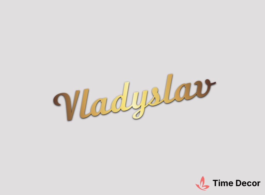 Пластиковий напис "Vladyslav" – дзеркальний або матовий пластик, можливе виготовлення з клейкою зворотною поверхнею для легкого монтажу.