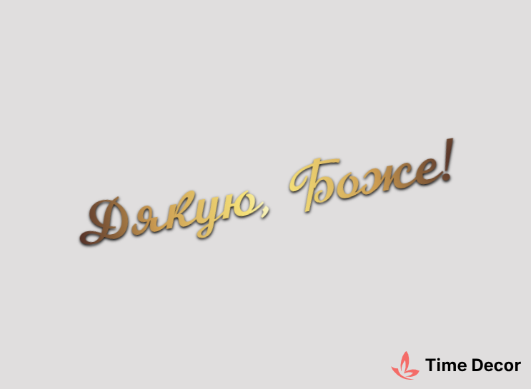 Пластиковий напис "Дякую, Боже!" – дзеркальний або матовий пластик, можливе виготовлення з клейкою зворотною поверхнею для легкого монтажу.