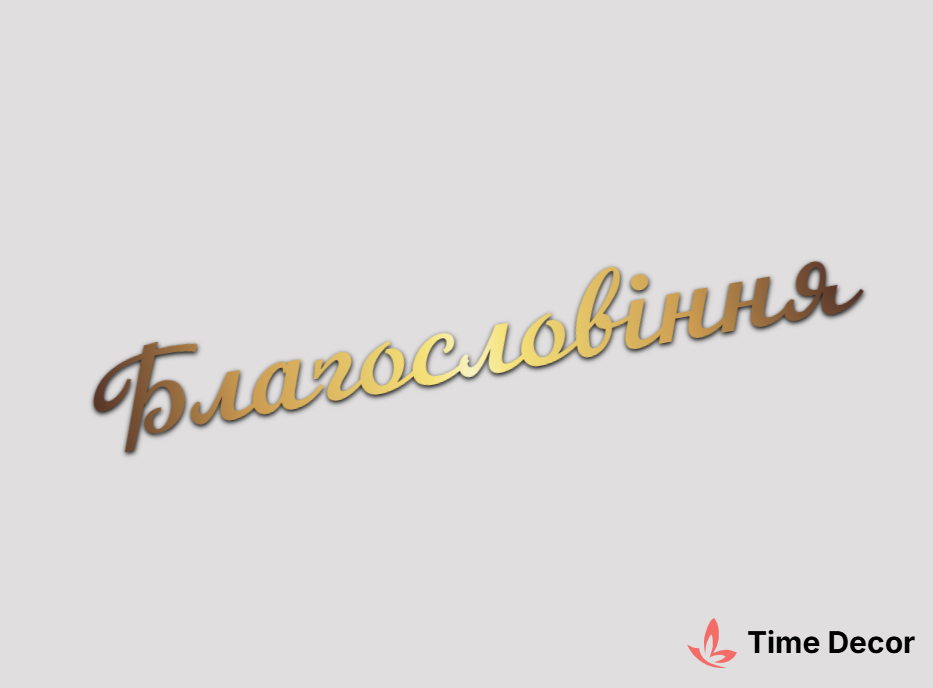 Пластиковий напис "Благословіння" – дзеркальний або матовий пластик, можливе виготовлення з клейкою зворотною поверхнею для легкого монтажу.