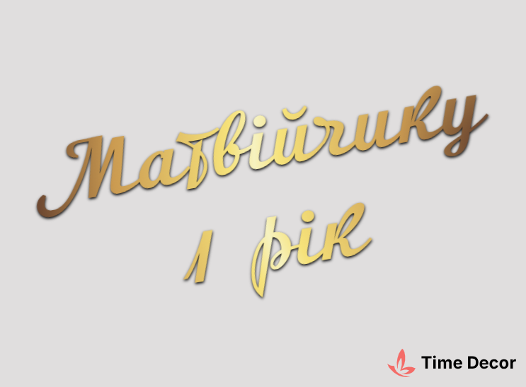 Пластиковий напис "Матвійчику 1 рік" – дзеркальний або матовий пластик, можливе виготовлення з клейкою зворотною поверхнею для легкого монтажу.
