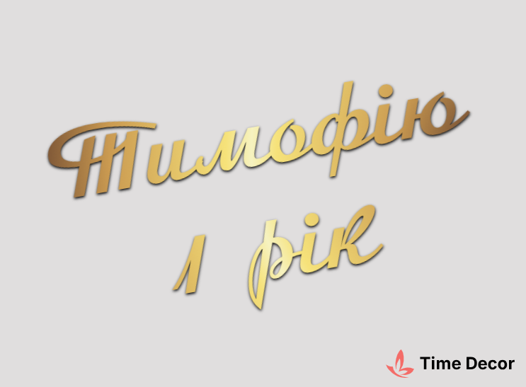 Пластиковий напис "Тимофію 1 рік" – дзеркальний або матовий пластик, можливе виготовлення з клейкою зворотною поверхнею для легкого монтажу.