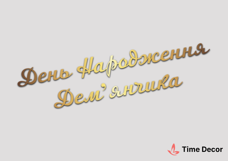 Пластиковий напис "День Народження Демʼянчика" – дзеркальний або матовий пластик, можливе виготовлення з клейкою зворотною поверхнею для легкого монтажу.