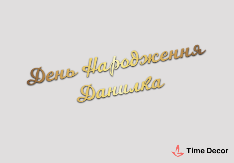 Пластиковий напис "День Народження Данилка" – дзеркальний або матовий пластик, можливе виготовлення з клейкою зворотною поверхнею для легкого монтажу.