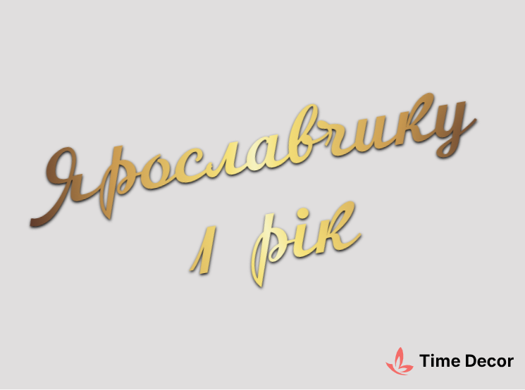 Пластиковий напис "Ярославчику 1 рік" – дзеркальний або матовий пластик, можливе виготовлення з клейкою зворотною поверхнею для легкого монтажу.