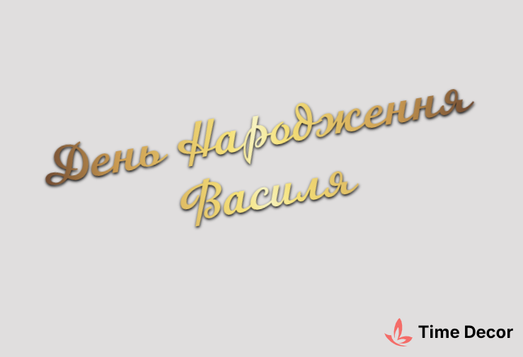 Пластиковий напис "День Народження Василя" – дзеркальний або матовий пластик, можливе виготовлення з клейкою зворотною поверхнею для легкого монтажу.